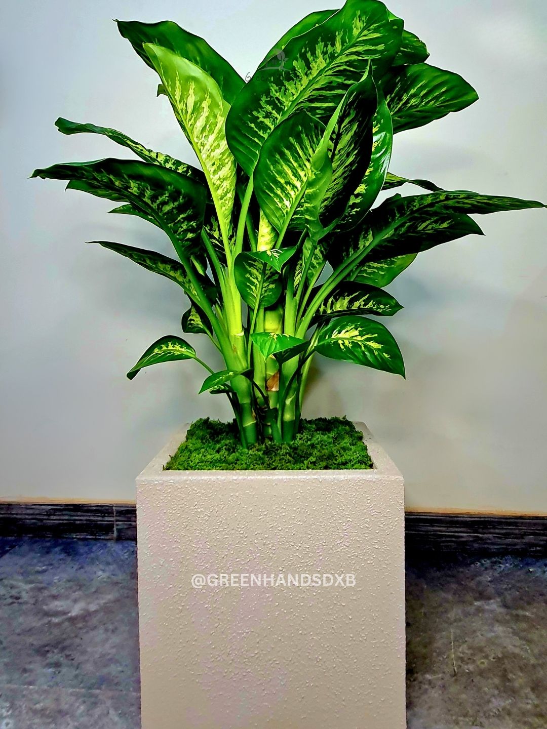 Transform your interior with our XL Potted Dieffenbachia, also known as Dumb Cane. This stunning houseplant is perfect for medium to bright light zones and comes potted in our signature organic soil mix. Enhance your UAE home today with this exquisite indoor plant.
