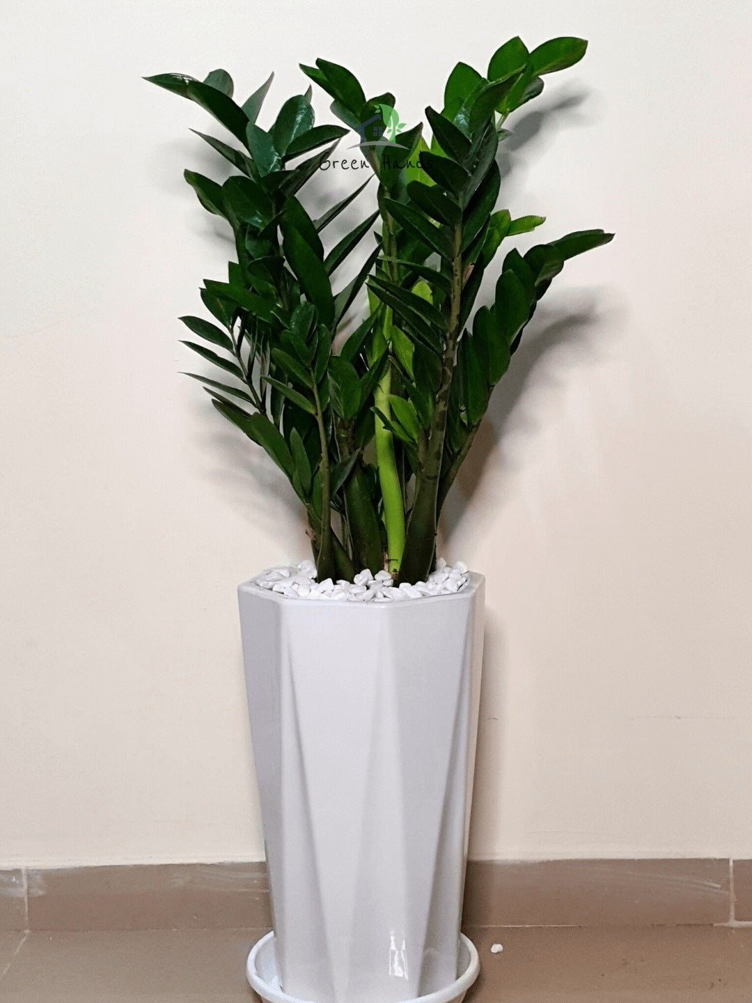 One Potted ZZ or Zamia Plant in a Tall Pot: